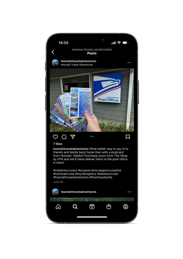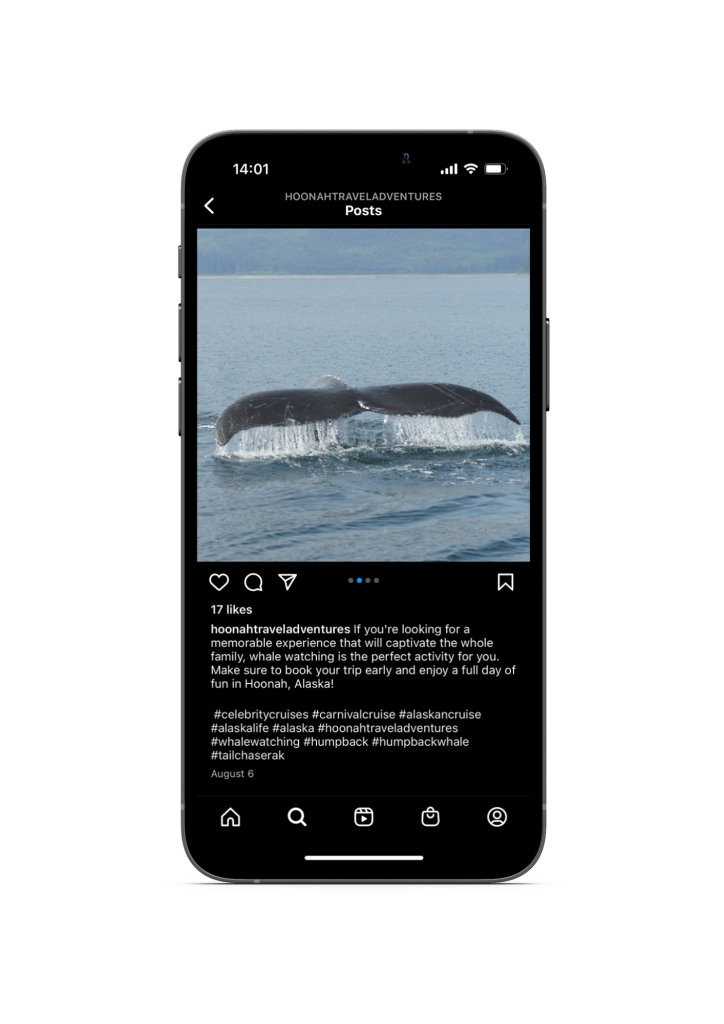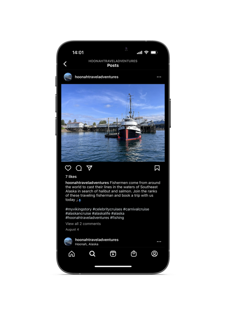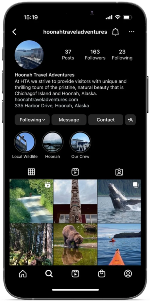 In the summer of 2022, I created an Instagram for Hoonah Travel Adventures, a small tourism company located in the SE Alaskan town of Hoonah.